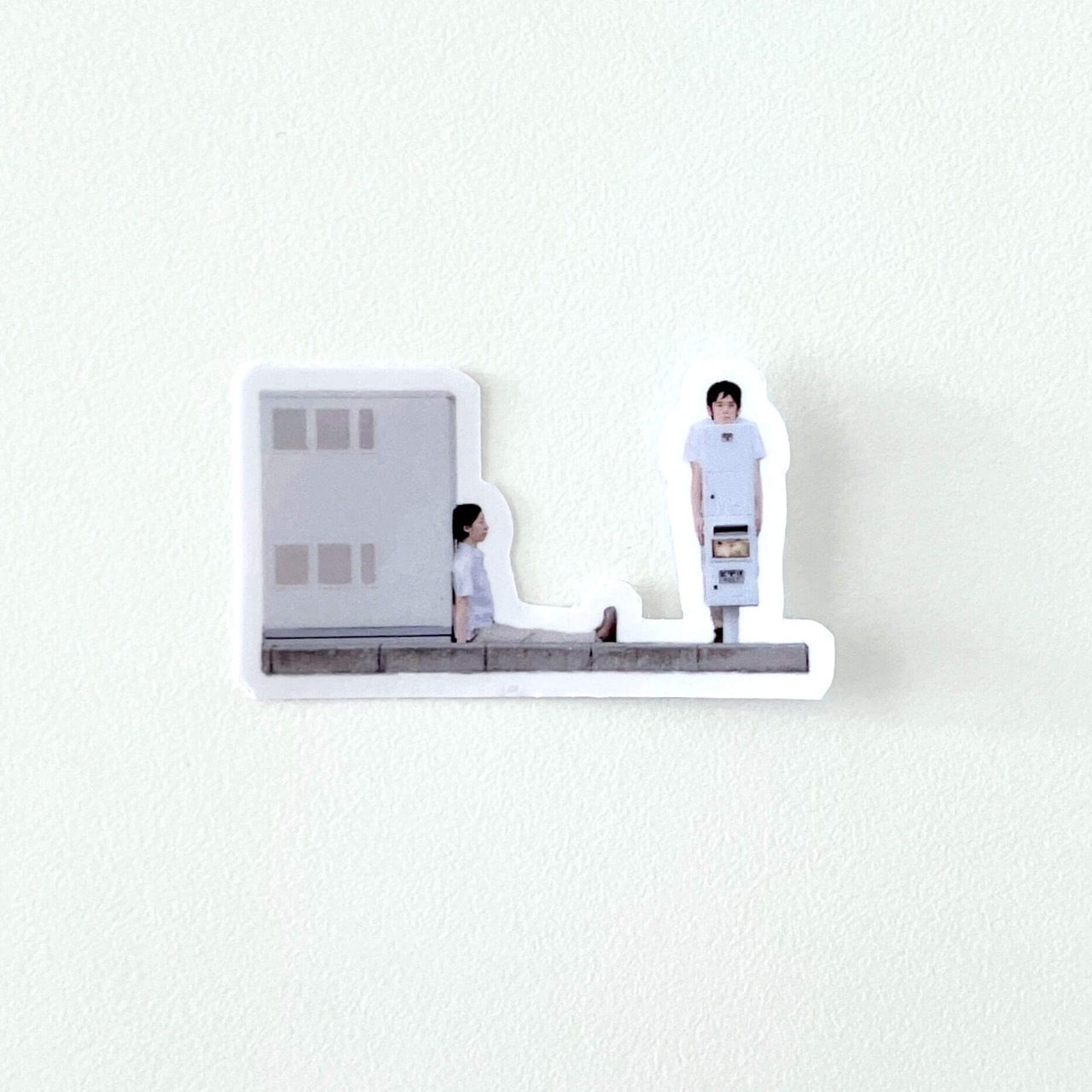 アグネス吉井が歩道の脇にあるボックスと郵便ポストに沿ってるシールです。